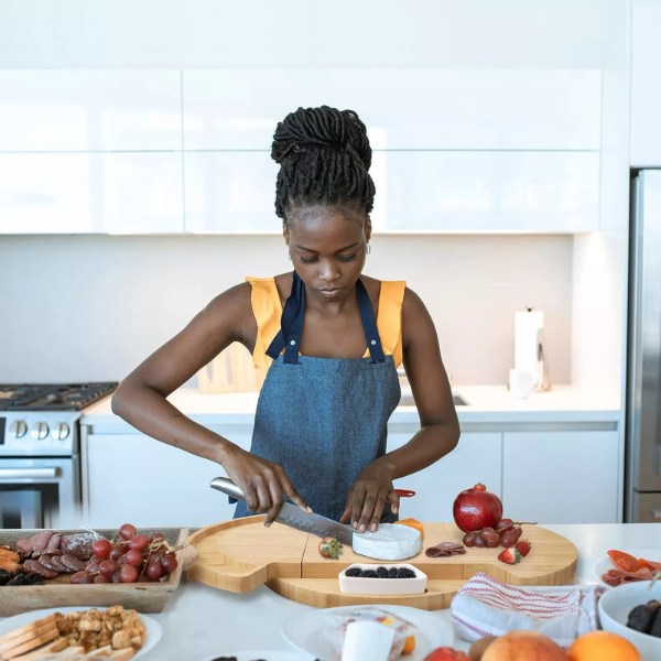 Deze plank toont niet alleen elegant uw snacks, maar dient ook als snijplank. Het gladde houten oppervlak maakt het gemakkelijk om al uw favoriete snacks op één plek te snijden en te serveren.