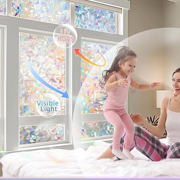 Wanneer zonlicht op de folie valt, creëert het een betoverende regenboog van kleuren in de kamer, maar blokkeert het het natuurlijke licht niet. Deze folie werkt goed in elke kamer – woonkamers, badkamers, kantoren en zelfs glazen deuren – waardoor het een allround oplossing is voor verschillende ruimtes.