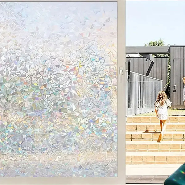 Afgezien van het regenboogeffect, voegt de folie een matte of getextureerde glazen look toe, waardoor uw ramen een moderne, stijlvolle upgrade krijgen zonder de kosten van nieuw glas.