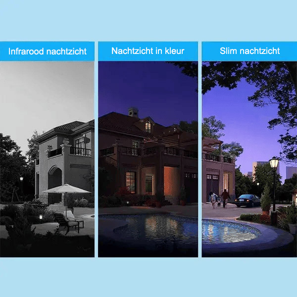 De camera heeft 3 groothoek-infraroodlampen en 4 heldere LED’s, waardoor zowel dag als nacht full color video mogelijk is.