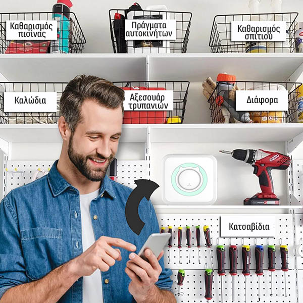 Organiseer je spullen ook buiten de keuken: print labels voor gereedschap en dozen in de garage, zodat alles netjes en makkelijk te vinden blijft.