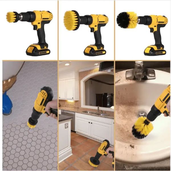 Deze professionele 3-delige set kan binnen en buiten gebruikt worden. Drillbrush opzetstukken zijn perfect voor het schrobben van keukenoppervlakken, badkameroppervlakken, badkuipen, douches, gootstenen, tegels, voegen, glasvezel, interieur van huizen, auto’s, boten en campers.