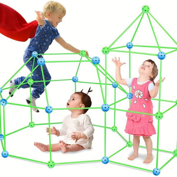 Stimuleer de creativiteit van je kinderen met de FORTKID-bouwset! Bouw een magisch fort waar je kleintjes kunnen verkennen, spelen en dromen. Met 87 duurzame plastic stokken en verbindingen kunnen ze eindeloze structuren van hun gewenste kastelen creëren of een geweldig fort bouwen en regeren als echte koningen en koninginnen!
