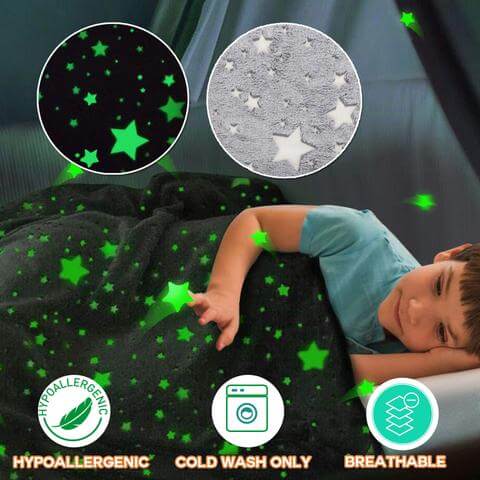 BLANKGLOW! Deze magische deken is gemaakt van lichtgevende materialen en brengt uw slaap naar een galactisch niveau! De lichtgevende materialen zullen ’s nachts een rustgevende lichtgroene gloed geven!