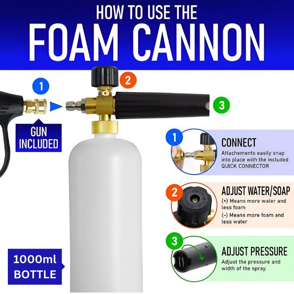 Van het wassen van auto’s tot het reinigen van vloeren, ramen en buitenruimtes, deze schuimdispenser is perfect voor een breed scala aan taken.