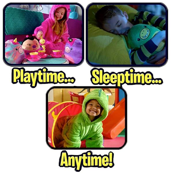 Wanneer het tijd is om te gaan slapen, verander je de hoodie eenvoudig weer in een knuffel. Het is zo simpel als 1-2-3. PILLOWPET is de perfecte metgezel van uw kind tijdens het slapen, filmavonden en knuffelen. Ook te gebruiken als kussen, onderweg of om gezellig in bed te kruipen.