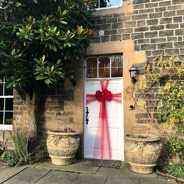 Versier je deur met onze luxe Bow Decorations. Met een 750 cm lang lint kunt u uw voordeur een prachtige feestelijke make-over geven. Of het nu Kerstmis, bruiloften of babyshowers zijn, de RUBYBOW verbetert de viering.