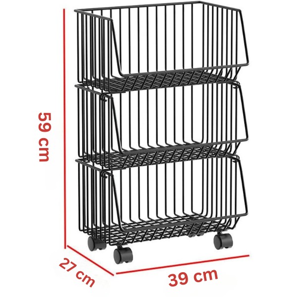 Houd groenten, fruit en voorraadkastartikelen georganiseerd en binnen handbereik. De drie verstelbare manden maken het gemakkelijk om je keukenopslagruimte aan te passen en tegelijkertijd een opgeruimde uitstraling te behouden.