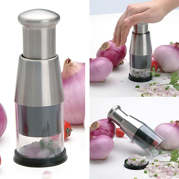 Hak moeiteloos groenten, fruit, kruiden, uien, knoflook en zelfs noten met een eenvoudige drukbeweging. Deze handmatige hakselaar is perfect voor het voorbereiden van maaltijden en vereist geen mesvaardigheden. Veilig in gebruik, houdt je handen uit de buurt van de messen, waardoor het risico op snijwonden wordt geminimaliseerd.