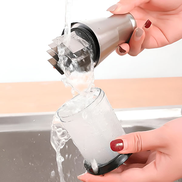 Vergeet schrobben! Haal de onderdelen er gewoon uit en spoel ze af onder water: schoonmaken is binnen enkele seconden gedaan. Perfect voor drukke keukens, kampeerders en iedereen die van gemak houdt.