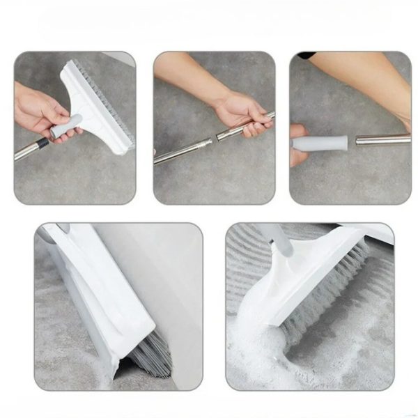 Het V-vormige ontwerp reinigt voeglijnen, plinten en krappe hoeken waar standaardbezems overheen glijden. De platte kant is geschikt voor badkameroppervlakken, ramen en open vloeren – allemaal met één hulpmiddel.