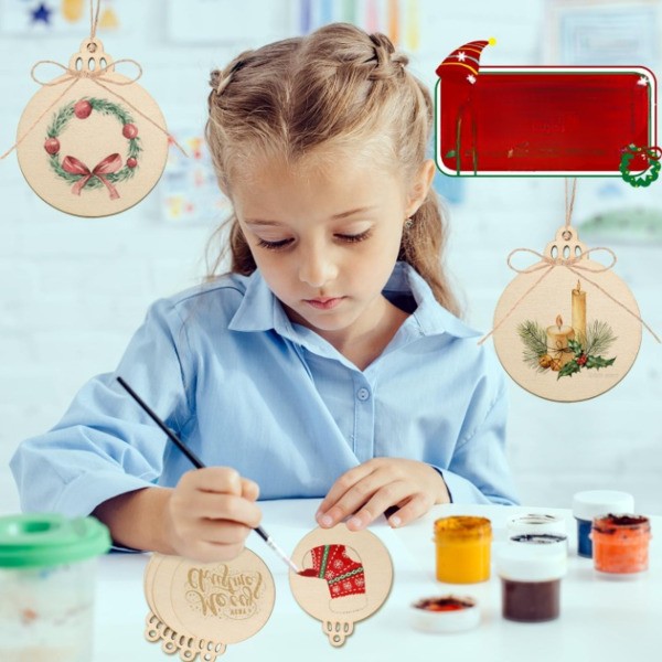 Transformeer je kerstdecoratie met 30 premium, voorgeboorde houten schijven, perfect voor het maken van gepersonaliseerde ornamenten die een rustieke charme toevoegen aan je kerstboom.