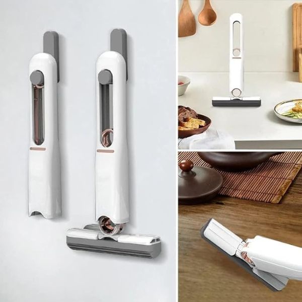 HANDYMOP maakt gebruik van een push-pull mechanisme, waardoor u vuil water kunt uitknijpen en uitwringen met een simpele push-pull beweging. De mop heeft een sterk waterabsorberend vermogen, waardoor er geen rommel achterblijft.