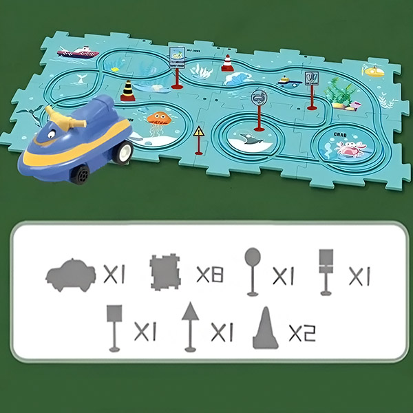 1 x ZOOMSTER X-delige set (inclusief X puzzelstukken en 1 speelgoedauto)