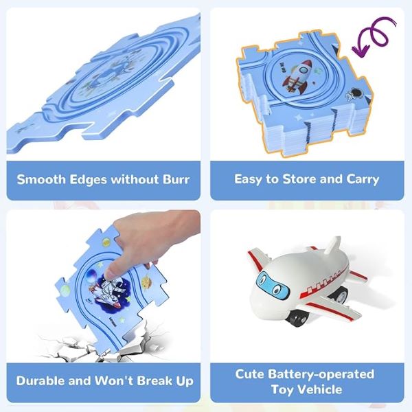 Het in elkaar zetten van de banen helpt bij het ontwikkelen van hand-oogcoördinatie en leert kinderen basisconcepten voor ruimtelijk en logisch denken.