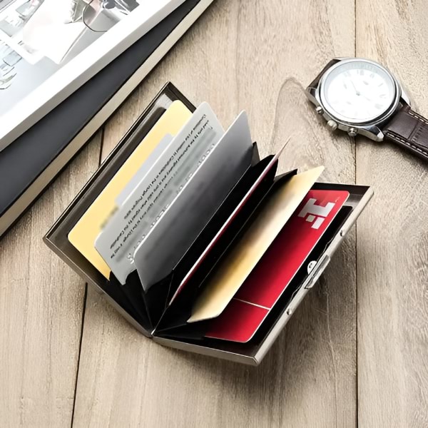 Deze portemonnee is gemaakt van hoogwaardig roestvrij staal en is duurzamer en gaat langer mee dan plastic of aluminium opties en biedt superieure bescherming voor je pasjes.