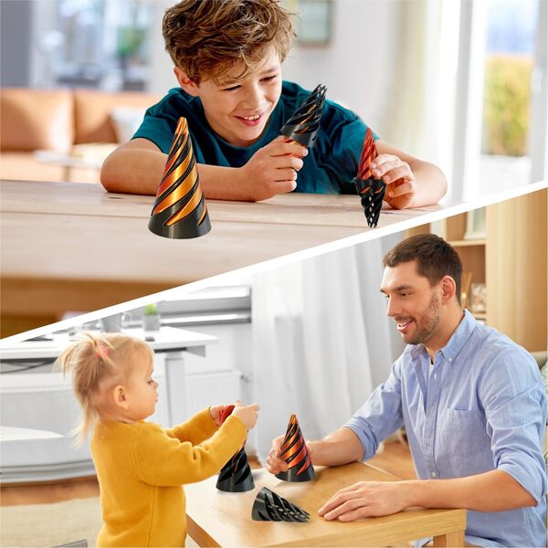 Ervaar de betoverende aantrekkingskracht van SPINEZO, het Spiral Cone Fidget Toy dat betoverende optische illusies combineert met stressverlichtende voordelen.