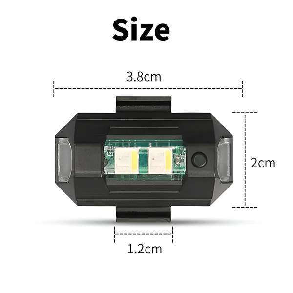 📏 Compact en lichtgewicht – 3,8 x 2 cm, ABS behuizing, set van 2 lampjes met klittenband, rubberen ringen en USB-oplaadkabel inbegrepen.